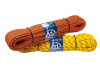 Шнуры и канаты на 100% состоят из высокопрочного полипропиленового волокна. Изготовление из первичного сырья, использование сердечников из крученых нитей, а также применение технологии плетения 50х50 (50% нити идет на изготовление сердечника, 50% - оплетки) позволяет изделию держать нагрузки, вдвое превышающие существующие аналоги на рынке. В процессе изготовления нити используются качественные красители и стабилизаторы, что в свою очередь делает изделие не только прочным, но и устойчивым к кислотам, щелочам, растворителям и ультрафиолету, позволяет не впитывать влагу, что очень удобно при использовании его на воде. Полипропиленовое волокно не поражается грибами, не плесневеет. Шнуры и канаты имеют небольшой вес благодаря низкой плотности материала. На пропиленовое волокно практически не действуют низкие температуры. Канаты отлично держат узлы, легко заплетаются и имеют очень широкую шкалу использования.