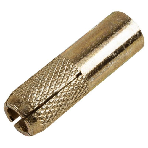 Забивной анкер предназначен для фиксации элементов к полнотелым основаниям: кирпич, бетон и т.д. Такой вид крепежа используется при монтаже подвесных потолков, прокладки кабельных каналов. Конструктивная особенность анкера забивного - резьба, расположенная на его внутренней части, что позволяет вкручивать в анкер различные крепежные элементы. Важно, чтобы резьба закрепляемой детали полностью соответствовала внутренней резьбе анкера. Специальные насечки на четырех элементах распорной части анкера предотвращают его прокручивание в основании.
