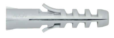 Предназначен для всех видов материалов из бетона и кирпича. Наличие блокировочных язычков предотвращает проворачивание дюбеля в отверстии, а зубцы прочно закрепляют дюбель за счёт трения в полнотелых строительных материалах. Передняя половина дюбеля имеет сплошное сечение, что ещё более усиливает распорное давление в глубине отверстия при завинчивании шурупа. Материал - ПОЛИПРОПИЛЕН.