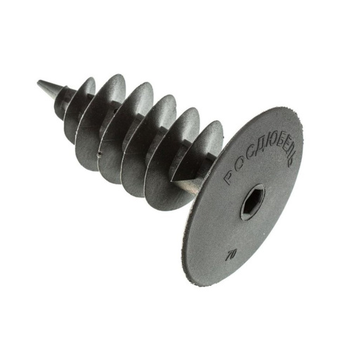 Винтовой кровельный дюбель используется при ремонте плоских кровель для крепления новых слоев тепло- и гидроизоляции поверх старых слоев без демонтажа последних. Кроме того, данный дюбель позволяет скреплять слои теплоизоляции между собой без использования клеевых составов и независимо от погодных условий. Выполняется из стеклонаполненного полиамида и обладает высокими прочностными характеристиками. Диаметр резьбы 18 или 28 мм.