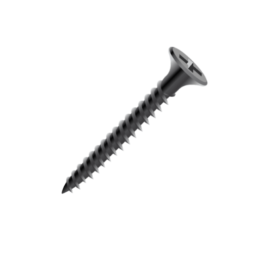 Крепёж представляет собой классический остроконечный шуруп с частой резьбой по всему стержню и плоской шляпкой с крестообразным шлицем Phillips № 2. Подходит для потайного монтажа - может быть утоплен полностью. Имеет фосфатное покрытие.