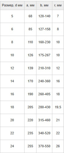 Таблицу параметров и схему предлагаем вам, для удобства подбора тарлепа крюк-крюк.