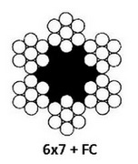 Конструкция каната: 6x7+ FC. (первая цифра – число прядей троса, вторая – число проволок в пряди, буквы – материал сердечника: FC – волокнистые материалы).