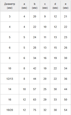 размерный ряд – М2, М3, М4, М5, М6, М8, М10, М12, М14, М16;