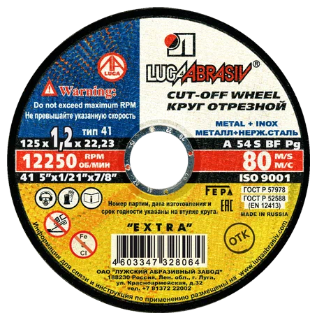 Круг отрезной по металлу 125 х 1,2 х 22,2 ЛУГА /25/400/