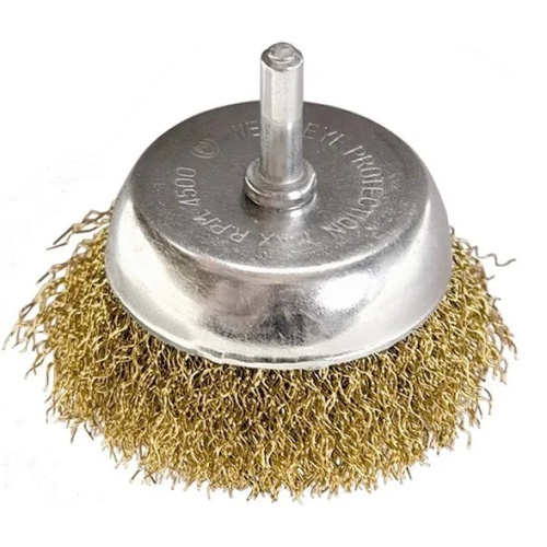 Щетка чашечная со шпилькой для дрели, 75 мм латунированная витая проволока// Matrix арт. 74478