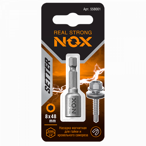 Насадка шестигранная магнит.(кровельная) 8*48 мм, 1шт/уп "NUT SETTER" арт.558001