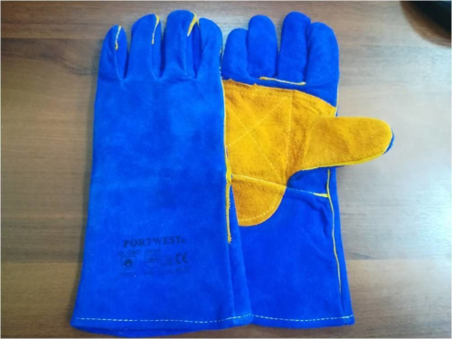 Краги "Сапфир" сделаны из толстого качественного спилка синего цвета сорта "АВ".Рабочая поверхность усилена дополнительной вставкой из спилка желтого цвета. Все швы закрыты кожаными вставками и прошиты кевларовой нитью. Крага обладает мягкой хлопковой подкладкой