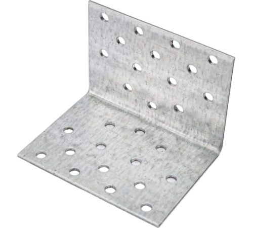 Крепежный уголок равносторонний предназначен для соединения и фиксации элементов конструкции под углом 90°. Большое разнообразие размеров позволяет использовать его практически везде, от сборки мебели до крепления бруса, межэтажных и чердачных балок перекрытия, и т.д. Перфорация с отверстиями диаметром 4,5 мм под саморезы и гвозди. Не нуждается во врезке, что предохраняет узел скрепления от возможного расшатывания.