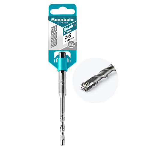 Бур SDS+ 6* 110/60 мм "Rennbohr Quadro 4 грани" 510611 /1/25/