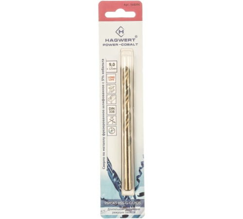Сверло по металлу 9,0х125мм Power-Cobalt Р6М5К5 фрез. Hagwert/Rennbohr /1/6/568090/668090