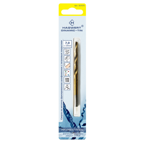 Сверло по металлу 7,0х109мм Dinamic-TIN Р9М3 фрез. Hagwert/Rennbohr /1/10/567070/667070