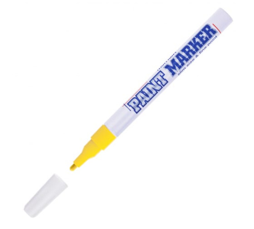 Цвет чернил — желтый, диаметр пишущего узла — 2 мм. Paint Marker подходит для реставрации дефектов на бытовой технике, обуви, кузове автомобиля, а также надписей на каменных плитах. Маркер-краска MunHwa имеет широкое применения в дизайне, декорировании и оформлении. Корпус маркера изготовлен из прочного алюминия. Клапанный механизм пишущего узла исключает растекание и разбрызгивание краски, преждевременное пересыхание маркера. Благодаря высококачественным чернилам, краска ложиться на поверхность равномерным и однородным слоем, полностью закрашивая обрабатываемую поверхность, быстро сохнет. После высыхания, надписи обладают свето- и водостойкостью, термостойкостью, устойчивостью к механическим воздействиям.