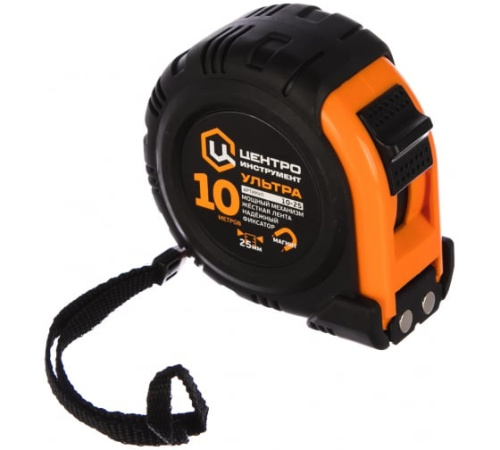Магнитная рулетка, 10мХ25мм Центроинструмент ULTRA используется для измерительных линейных работ. Обрезиненный корпус позволяет защитить ее от поломки во время падения. Оснащена фиксатором мерной ленты для удобства измерения и мощным механизмом ее возврата. Хорошо видимая шкала обеспечивает легкое считывание замеров. Ремешок на корпусе необходим для удобной переноски на запястье или для подвешивания рулетки на ремень.