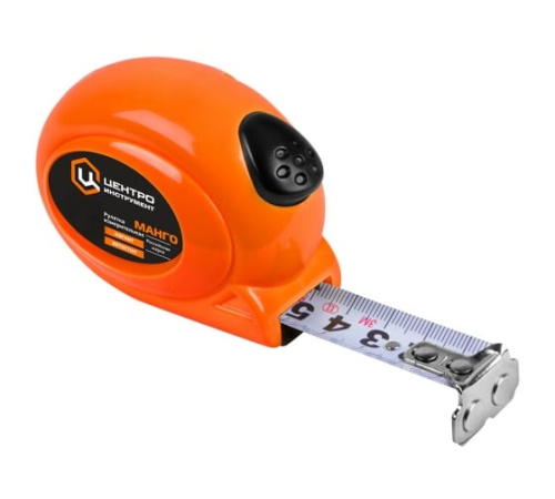 Рулетка Центроинструмент Манго 1307-8-25 выполнена из прочного пластика, устойчивого к ударам. Для удобства работы изделие оснащается прочной стальной лентой и мощным механизмом возврата. Комфортное прочтение данных с ленты обеспечивается большим размером цифр. В случае измерений внутренних размеров имеются магниты, расположенные в зацепе.