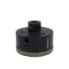 Назначение: керамогранит, гранит Особенности: алмазные коронки с резьбовым соединением М14 для сухого высверливания отверстий в искусственном и натуральном камне с помощью УШМ. Технология производства: вакуумная пайка
