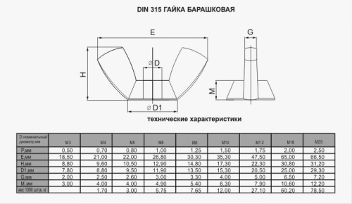 Гайка барашковая М 8 DIN 315 /500/4000шт/