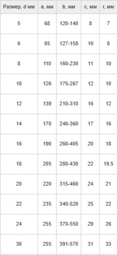 Таблицу параметров и схему предлагаем вам, для удобства подбора тарлепа крюк-кольцо.