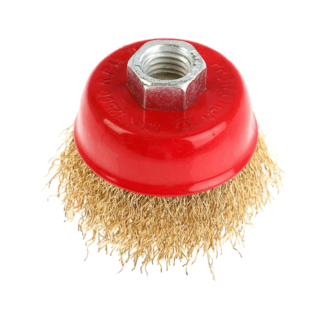 Корщетка-чашка является сменным элементом и используется в угловых шлифовальных машинах. Применяется для шлифовальных и обдирочных работ, полировки, зачистки от лака, краски и коррозии различных поверхностей и изделий. Рабочая часть состоит из волнистой стальной проволоки с латунным покрытием.
