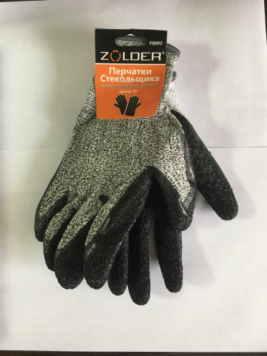 Перчатки стекольщика Zolder FQ002 выполнены из прочного полиэстера, с тыльной стороны покрыты толстым слоем текстурированного вспененного латекса. Ребристая противоскользящая рабочая поверхность перчаток обеспечивает надежный сухой и влажный захват при работе со стеклом и другими скользкими гладкими материалами. Перчатки дают надежную защиту рук от порезов, натирания, загрязнений, отлично сидят и не сковывают движения.